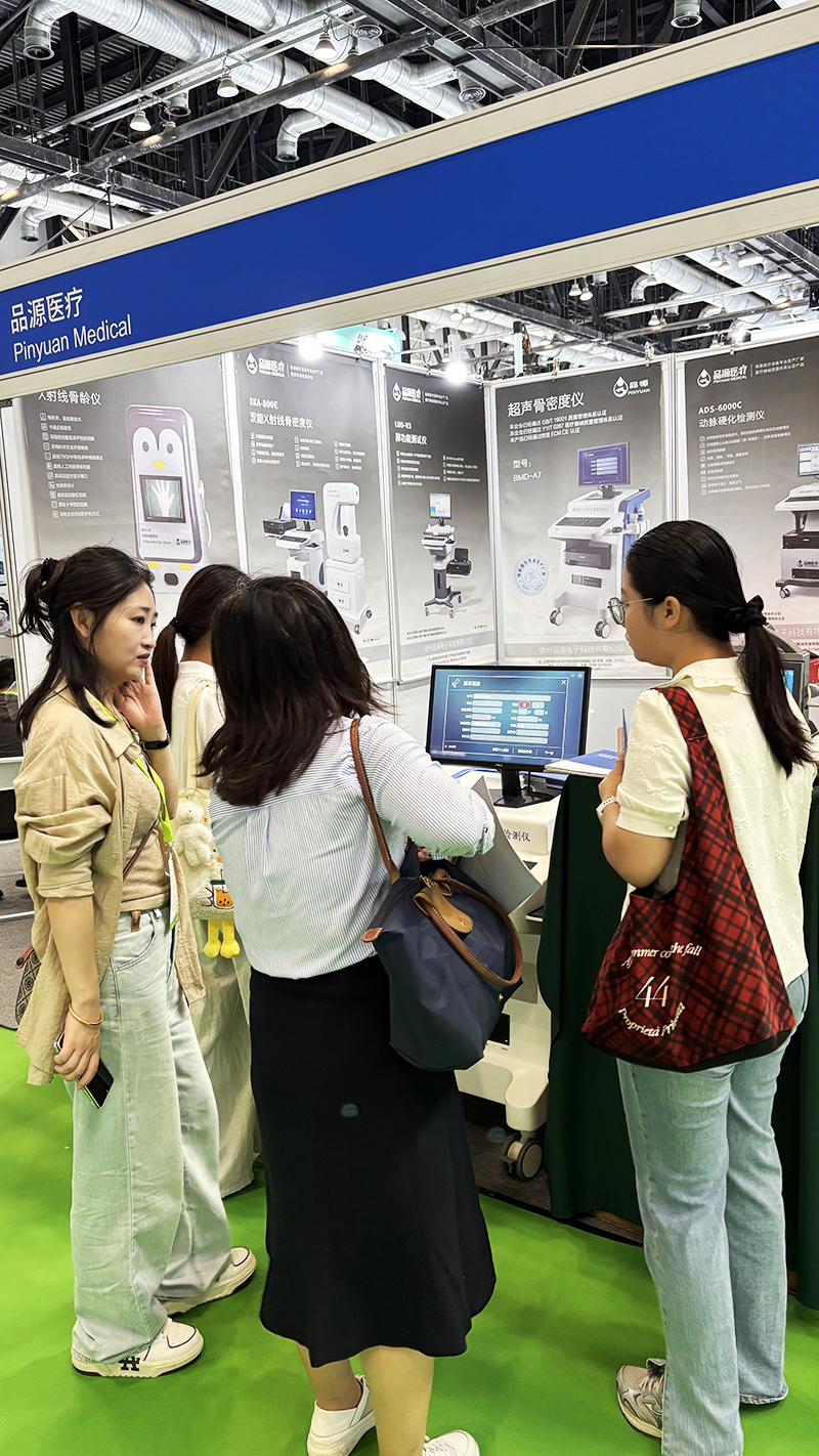 在展會現場,品源醫療通過實物展示、視頻演示和現場檢測體驗等多種形式,生動地展現了產品的技術優勢和應用場景。專業的技術人員耐心解答每一位訪客的疑問,詳細講解產品特點、操作流程及臨床應用價值,贏得了參觀者的一致好評。